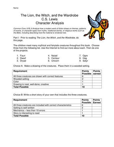 Looking for your weekly dose of homework help and humor. Beaver Zoe Quevli Unicorn Ella Kapocius Centaur Alena Krauss Mr. The Lion the Witch and the Wardrobe Theatrical release poster Directed byAndrew Adamson Screenplay by Ann Peacock Andrew Adamson Christopher Markus Stephen McFeely Based onThe Lion the Witch and the Wardrobe by C.